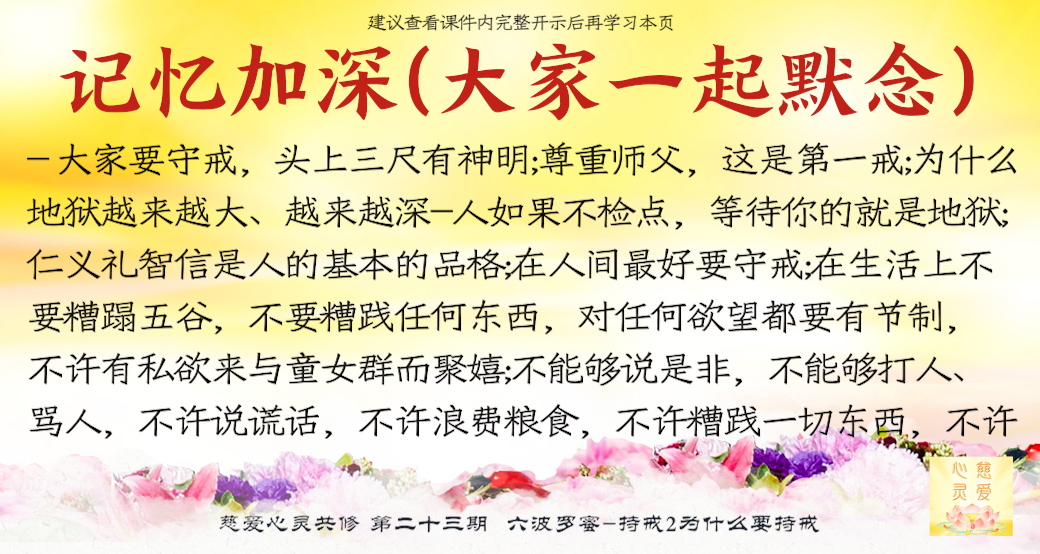 什么是持戒?就是坚决不做不好的事情。忍辱是什么?就是人家骂我了,我就不骂他。。。持戒,守住智慧,清心寡欲。清心是什么意思?就是心要干净。寡欲是什么?寡就是少的意思。欲是什么?欲望。就是让自己的欲望越来越少。