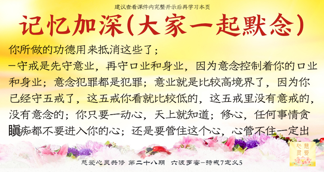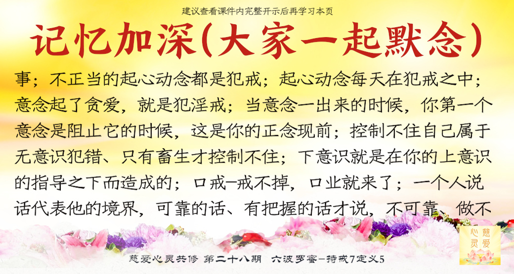 管住你的身口意,慢慢地就能守住你的戒律。要懂得,当意念一出来的时候,你第一个意念是阻止它的时候,这是你的正念现前。