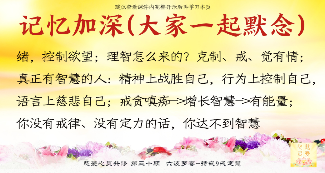 要知道自己在做什么事情,要有节制。做人、做任何事情都要有节制。懂得戒律,才能心定得下来。要定而后能静,一个人心定得下来,才能慢慢安静。