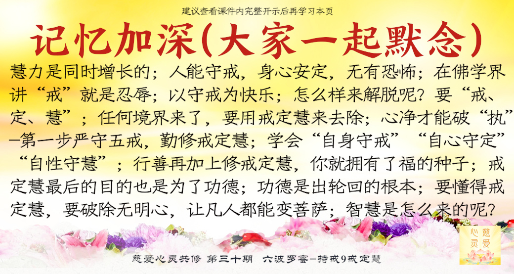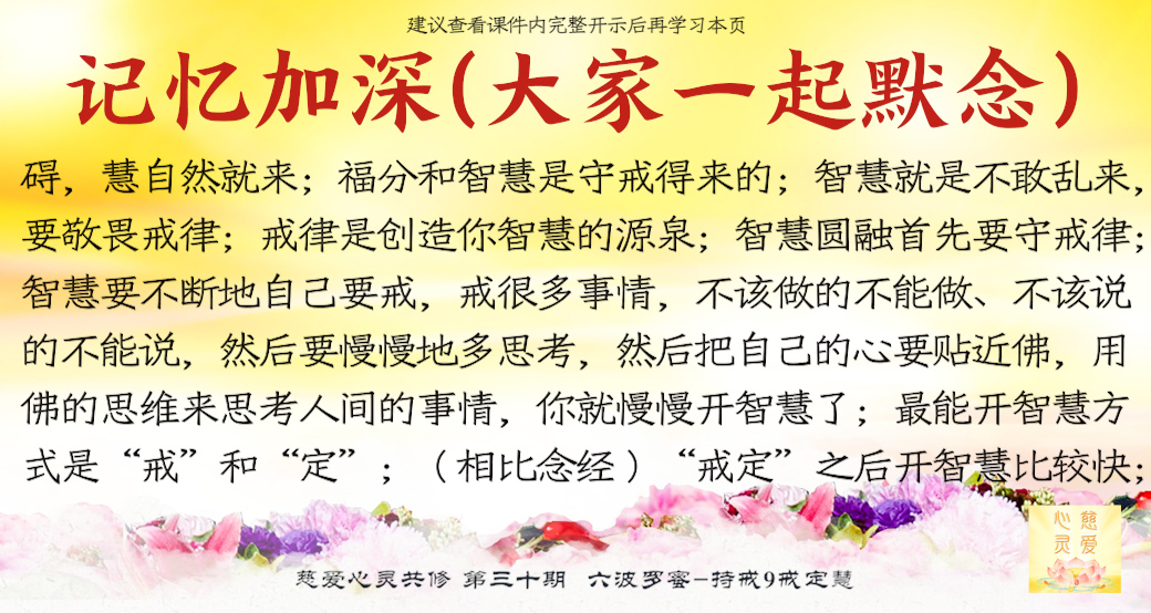 心净是先决条件,心净才能把佛法因果放在心中,不以人间对错评判事物,学佛中能化解烦恼障碍。第一步严守五戒,勤修戒定慧。