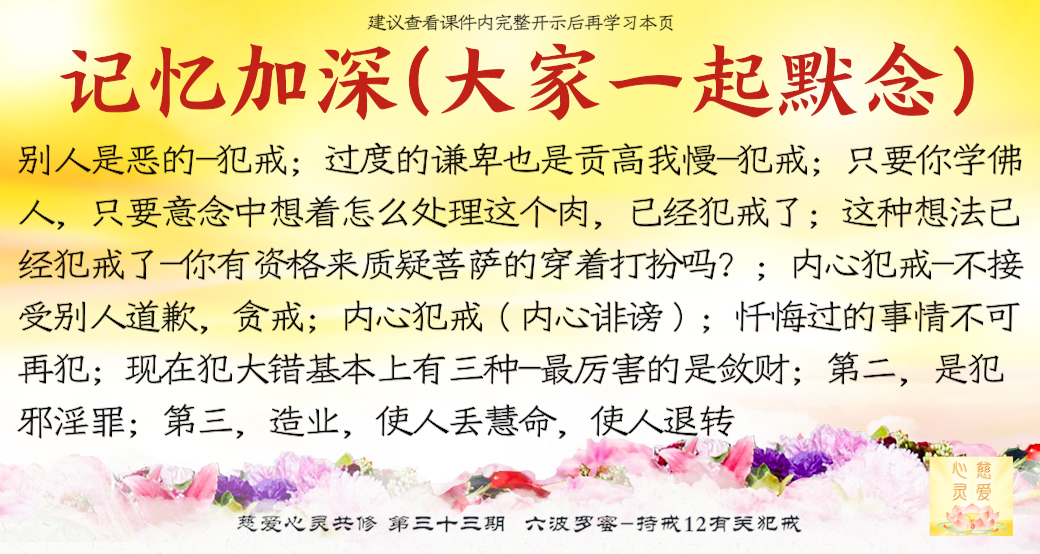 别人向你认错,有的人跟你说“我认错”,你如果不接受他的道歉,你自己又在内心犯戒。这个犯什么戒?“贪”戒。为什么?不够啊,他跟你赔礼道歉,你觉得不够,“我要你更多”,不叫“贪”啊?因为这会让你的慈悲心和一种柔软心(慈悲心的另外一种,待人接物的柔软心)失去的。所以很多人瞋恨心越重,慈悲心越少,时间长了这种人就没救了。
