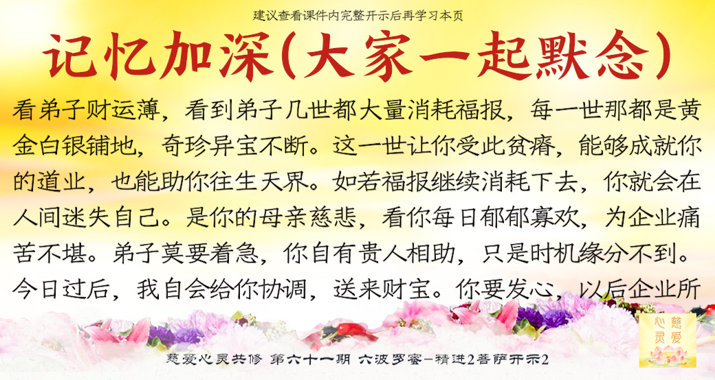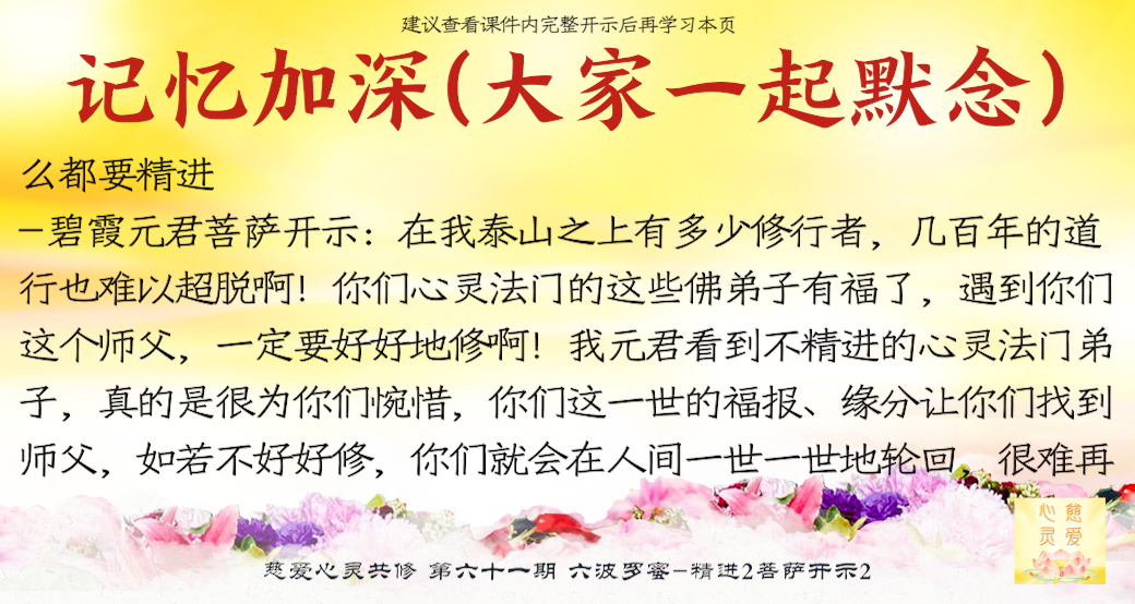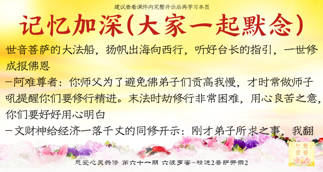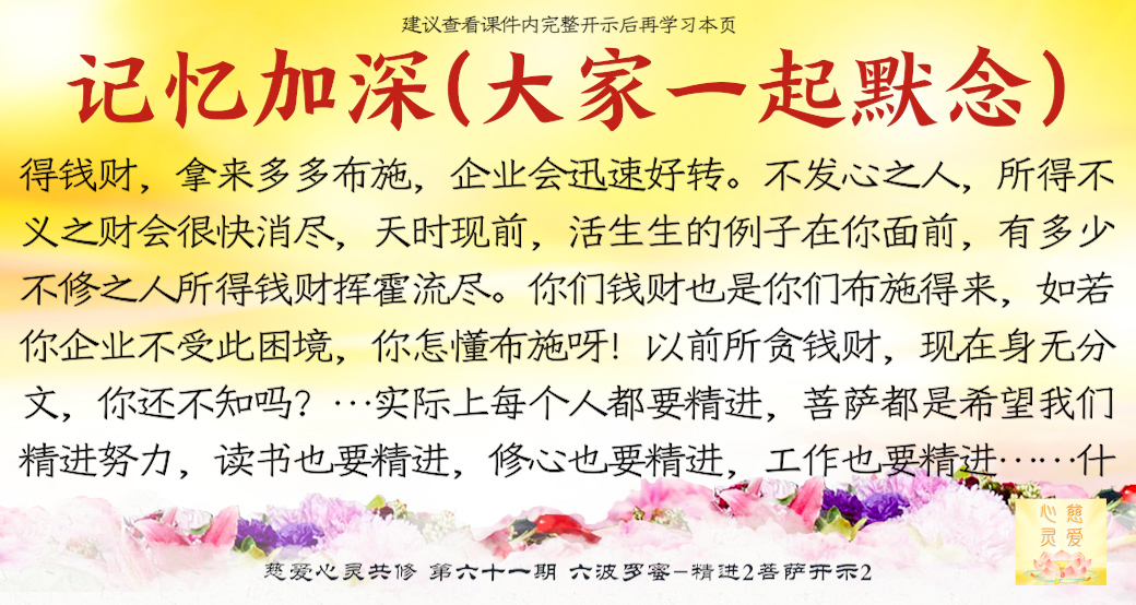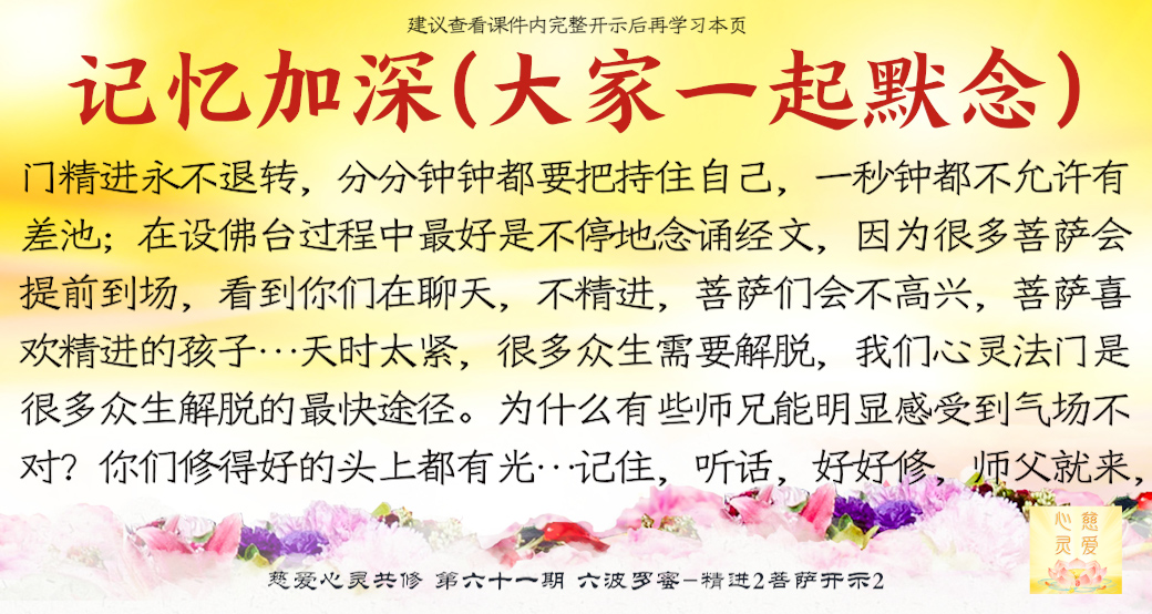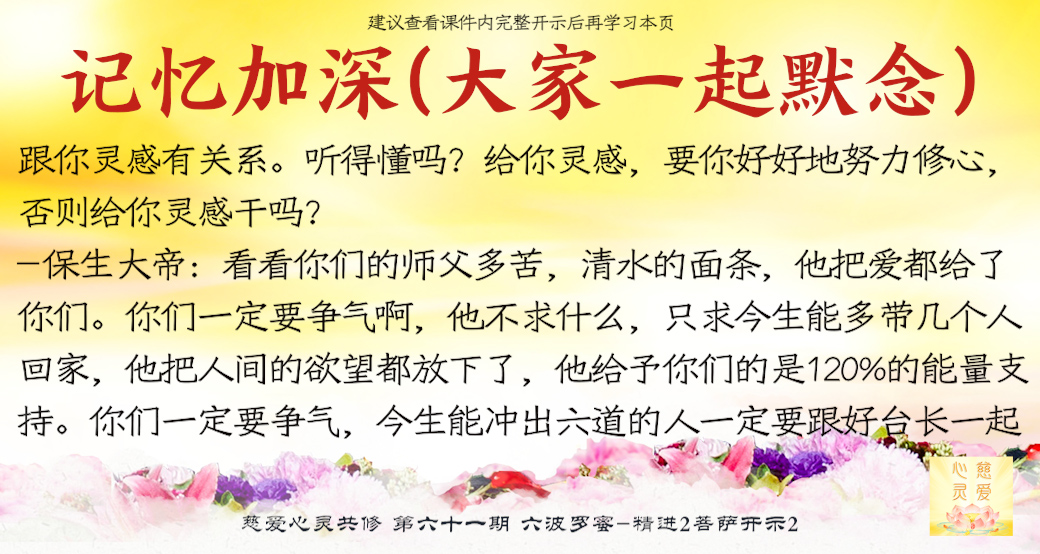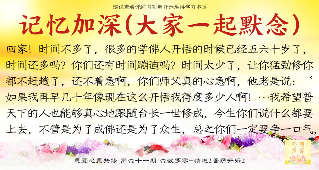 (“心离体相,背尘合觉。大度能度堪为广度,大悲无我方为正觉。即心即佛,舍我其谁。欲成正觉,舍其忘我。我为说法,法身亦同。”)但是师父后来也跟着观世音菩萨弄两句文言文,实际上这几句话就是鼓励大家要精进修行,时不待人啊,时间不等人啊