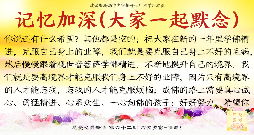 也希望大家能够好好学佛,如如不动。师父在遥远的澳洲,非常想念大家、思念大家,也希望大家从学佛当中得到更多好的体会,来激励和鼓励自己精进努力,放下万缘,忍辱精进。师父以后经常会给大家做这方面白话佛法的开示,能够让大家拥有时刻清醒的智慧,来面对你烦恼的人生。有志者事竟成,只要有智慧,你一定能一世修成!