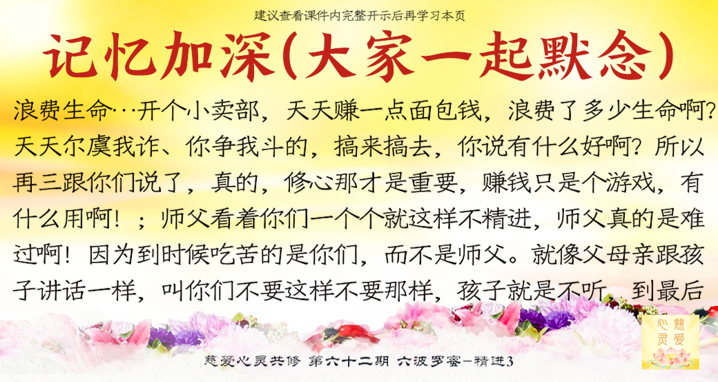 精进努力,永不懈怠。学师父,不管碰到什么困难,坚持,永不懈怠