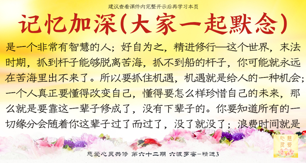 慧命真实不虚,期望如不开悟当下,人生昙花一现。须严守戒律,精进向善,抓住一世为人的机会,消业障,积资粮,增功德。