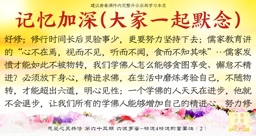 《金刚经》中讲“应如是降伏其心”,儒家教育讲的“心不在焉,视而不见,听而不闻,食而不知其味”的说法,也就是说,我们做人只要集中一个事情,对人间很多不该听的就不会去听,不该说的就不会去说。所以,儒家发愤才能如此不被物转,我们学佛人怎么能够贪图享受、懈怠不精进?必须放下身心,精进求佛,在生活中磨炼考验自己,不随物转,才能超出六道,明心见性。