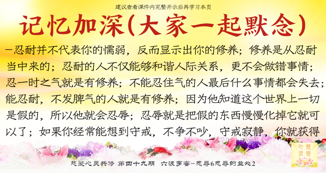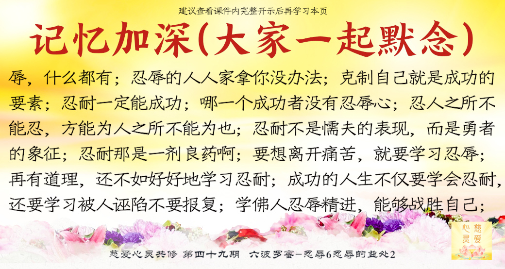 因为他知道这个世界上一切是假的,所以他就会忍辱。因为世界上很多事情不是真的,一会儿就没了,不就假的吗?忍辱就是把假的东西慢慢化掉它就可以了
