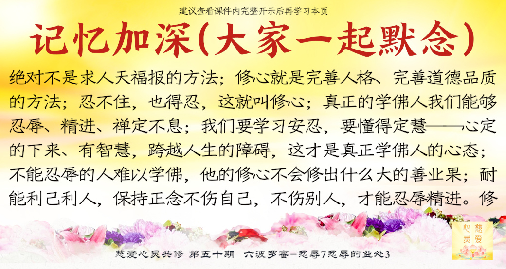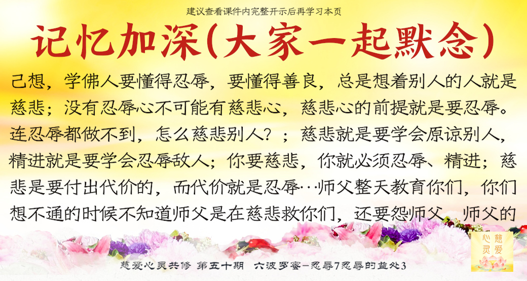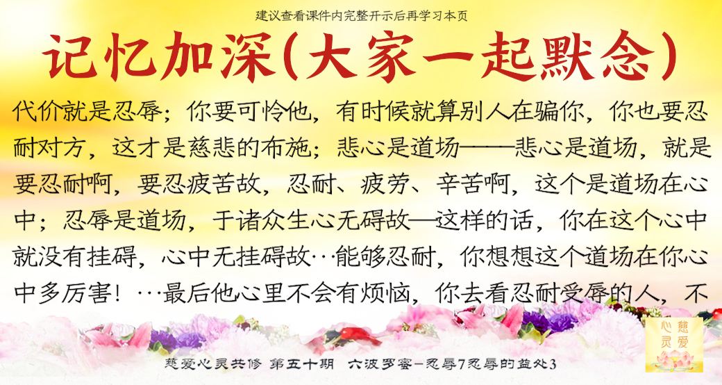 你想对别人好,想慈悲别人,当然有代价的。比如:你对别人好,可能对方会骂你;你劝别人,对方不领情……你就要忍辱。师父整天教育你们,你们想不通的时候不知道师父是在慈悲救你们,还要怨师父,师父的代价就是忍辱。