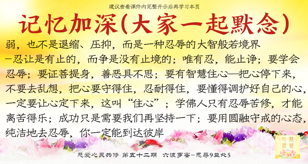 只有有智慧之人才会拥有慈悲心,慈悲是解决烦恼的良方,希望大家好好地学习忍辱精进。
