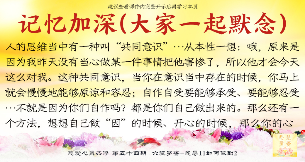 这种共同意识,也就是说你必须在你的本性当中,本性的内意识和外意识所合在一起,有一种真实的意识存在,这叫共同意识,叫共识。举个简单例子,这个人今天别人跟他作恶,他觉得非常地恨、不开心。但是从本性一想:哦,原来是因为我昨天没有当心做某一件事情把他害惨了,所以他才会今天这么对我。这种共同意识,当你在意识当中存在的时候,你马上就会慢慢地能够原谅和容忍。这种潜意识,也是让人能够接受和改变自己潜意识当中存在不良习气的一种方法。