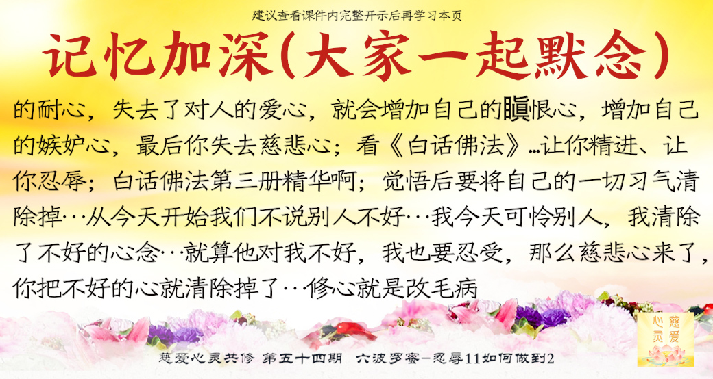 当然应该是“化解”了。“忍辱”不是最高境界,忍辱说明你心中还有啊,你在忍耐。“化解”就没了(是这样,听师父一说很简单了。什么时候能跟师父学到讲东西能讲得这么通俗易懂,感觉很简单就好了)对了,这就叫“智慧”,要学的是“智慧”。