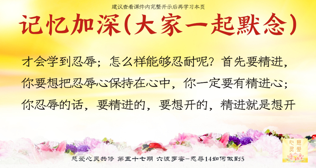 任何事情来了,你不要去接受它。今天人家来气我,我不生气;今天人家来害我,我不被他所害;今天人家来骂我,我不接受他的骂;今天不管发生什么事情,我还是原来的我:那么你就成功了。所以要学会忍辱。