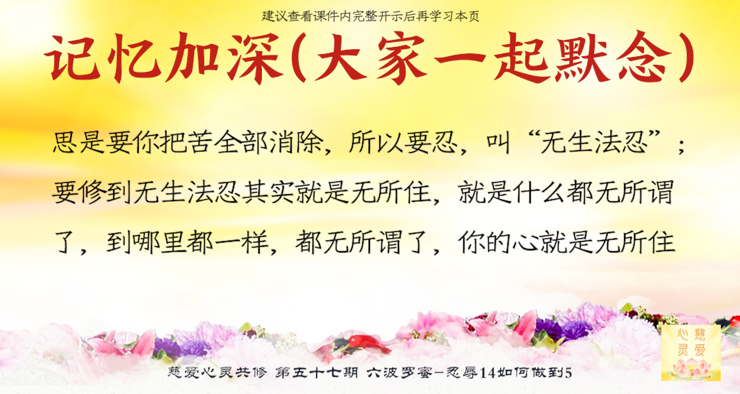 要安住自己无生无灭的心。就是自己的心不要一会儿觉得我有这么多的麻烦、烦恼,一会儿觉得无所谓的。有什么烦恼、无所谓的?人的心不要有生,也不要有灭;不要生出烦恼,也就不需要去灭除烦恼。现在很多人很容易生烦恼,但是有时候他们又觉得无所谓了,也就把自己的烦恼心灭掉了。菩萨教我们要安住无生无灭之心,不要认为自己在安住的时候是在忍辱、在忍耐。一个有智慧的人不要认为自己在忍耐,不要认为自己在忍辱,你心里不生怨恨就是最高的忍耐。也就是说,今天还在忍耐的人,因为心中还有恨,“我是在忍耐着”;而真正有境界的人已经无生法忍,没有忍耐,有什么好忍耐?举个简单例子,自己孩子做错事情,妈妈忍耐住,说“我不跟你算账”,实际上她也没必要把孩子的错记在心中,因为是自己的孩子,这就是境界。