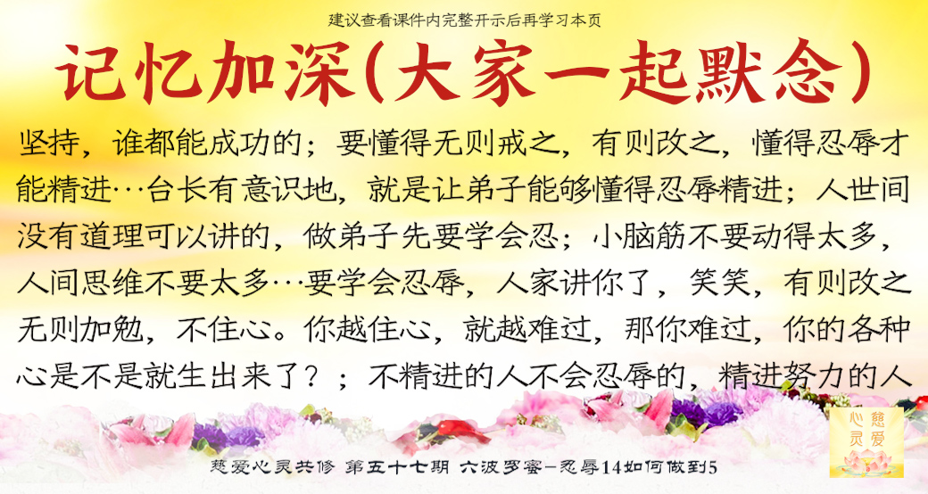 修心难吗?(难,太难了)你要让人家尊重你,你说难吗?因为你的干净、你的坚强、你的忍辱,别人才会尊重你。有什么好难的?自己只要用心去做,每天一点点、一点点这么累积,时间长了就成功了(明白了)人家花一个月做到的事情,你花一年总做得到了吧?